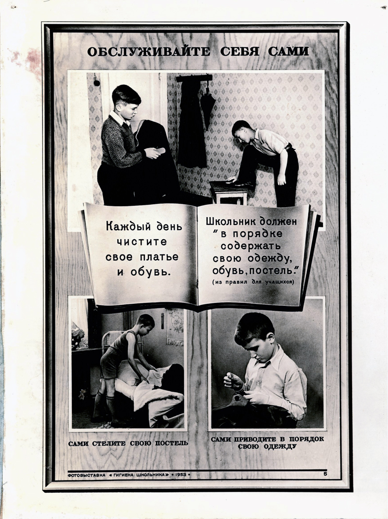 Серия из 18 образовательных плакатов фотовыставки Минздрава СССР «Гигиена школьника». Фотографии наклеены на обтянутый тканью картон. Оригинал, 1953 год. Хорошее состояние.