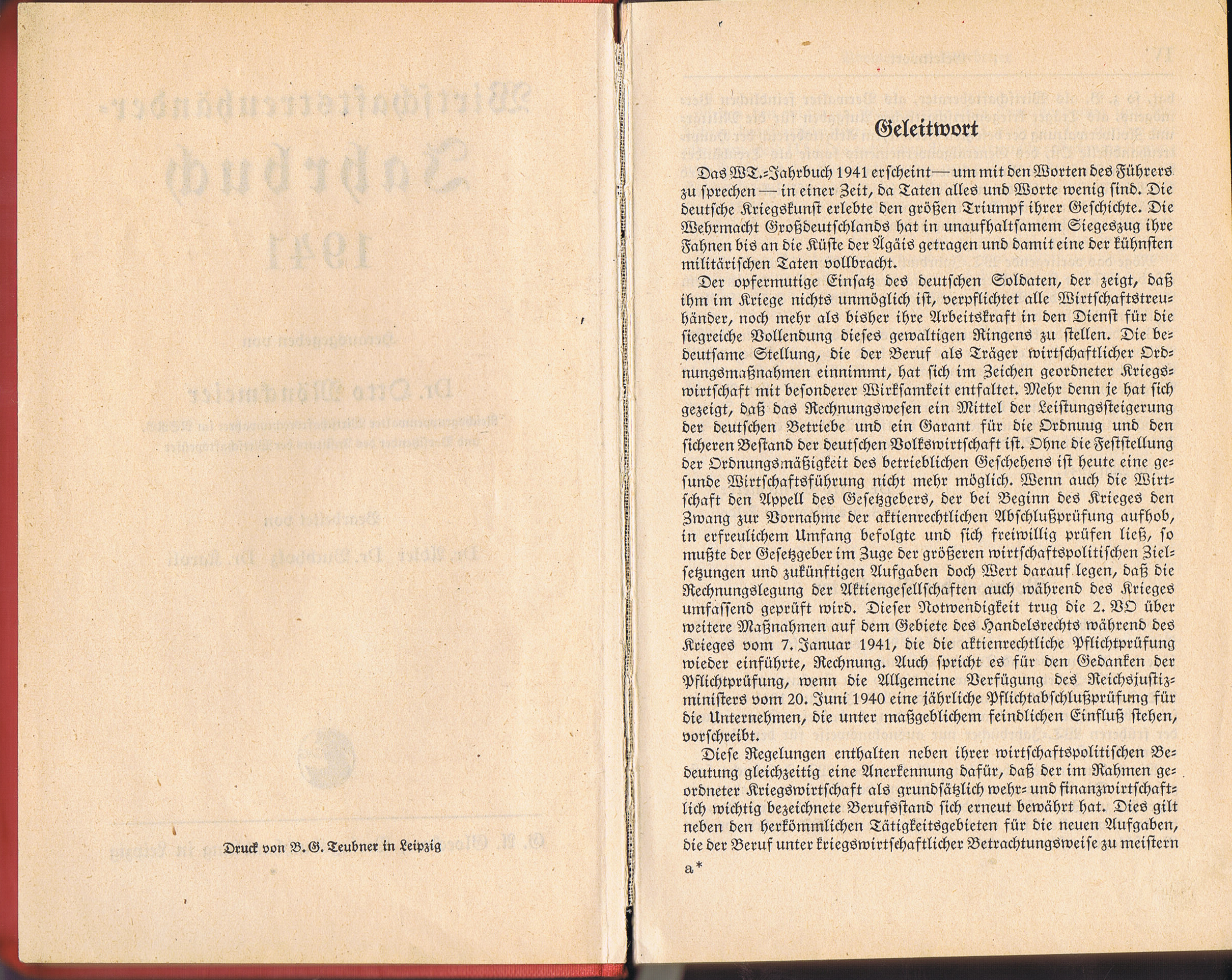 В качестве предисловия к изданию приводится пафосная статья автора, в которой говорится о возрастающей роли аудиторов и счетоводов в народном хозяйстве страны на фоне военных успехов Вермахта и самоотверженности немецких солдат. Аудиторы, считает глава национал-социалистического союза аудиторов, обязаны столь же самоотверженно работать на благо страны для победоносного завершения военных действий.