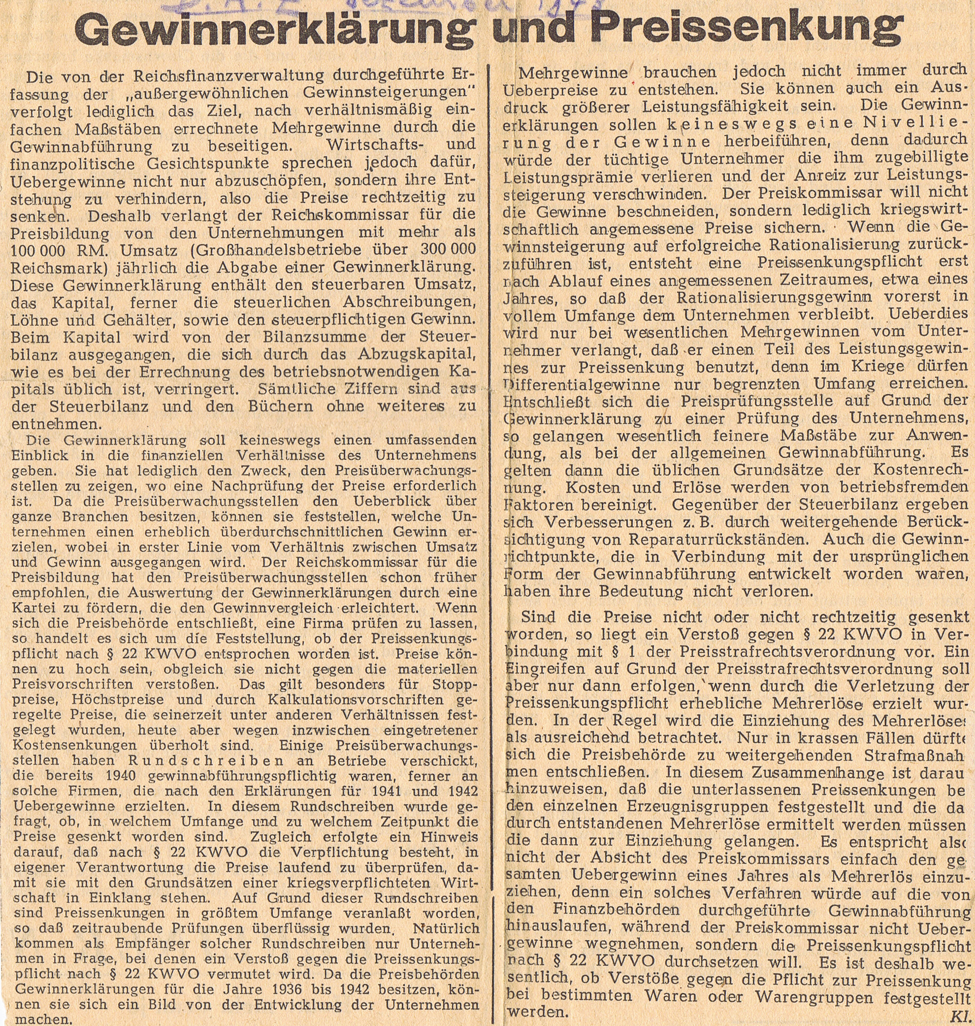 При этом в статье подчеркивается важность аудита именно в военной отрасли, поскольку проверки — это не только средство повышения производительности труда на промышленных предприятиях, но и гарант правильного регулирования и стабильности в экономике Третьего Рейха. Особенно это касается акционерных обществ, находящихся под «вражеским влиянием» (то есть содержащие иностранный капитал), ежегодные проверки которых были предусмотрены специальным постановлением Министерства юстиции Германской империи от 20 июня 1940 года.