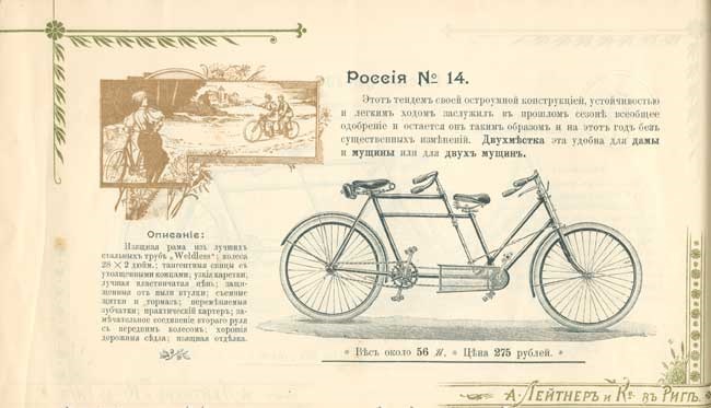Линейка велосипедов Лейтнера включала более 20 моделей. При этом ценовая политика рижского предпринимателя была по тем временам вполне демократичной: самый простой велик стоил 130 рублей, стоимость самых дорогих доходила до 450 рублей. Заказов у изобретателя хватало: в 1913 году его фабрика получила от военного ведомства большой заказ на производство тысячи дорожных мужских велосипедов, что, разумеется, только добавило престижа предприятию Лейтнера, уже, к слову, получившему золотую медаль Нижегородской Всероссийской производственной выставки. Так что не удивительно, что к началу Первой Мировой войны годовой оборот велосипедной компании достигал 400 тысяч рублей, а объем продукции достиг 8 тысяч единиц.